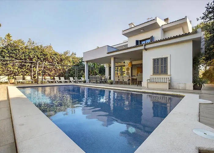 Deze gesitueerde in Can Picafort Villa Vertice - Bright Luxury Villa Can Picafort ligt binnen 2 km van de Mercat de l'Olivar en nodigt gasten uit om te genieten van een terras.